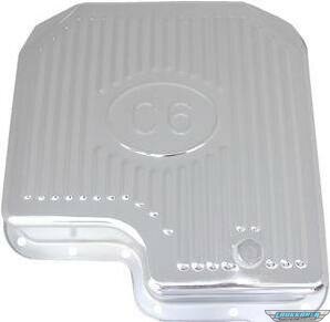 Transmission Pan - Deep Sump - Adds 2.0 qt Capacity - Ribbed - Steel - Chrome - C6 - Each