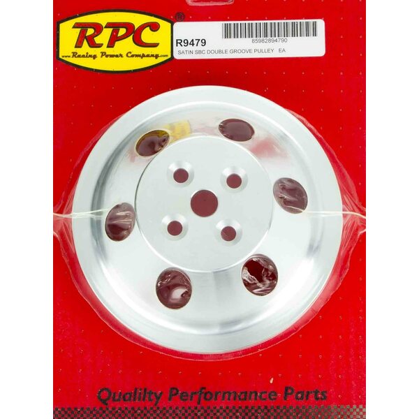 Water Pump Pulley - V-Belt - 2 Groove - 6.600 in Diameter - Aluminum - Satin - Short Water Pump - Small Block Chevy - Each