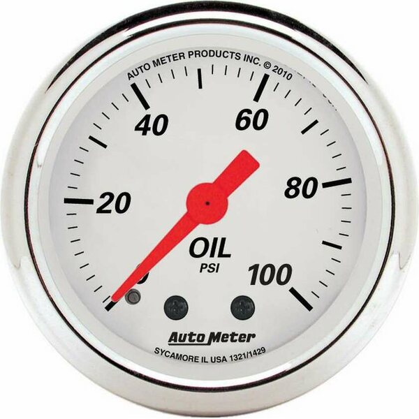 Oil Pressure Gauge - Artic White - 0-100 psi - Mechanical - Analog - Full Sweep - 2-1/16 in Diameter - White Face - Each