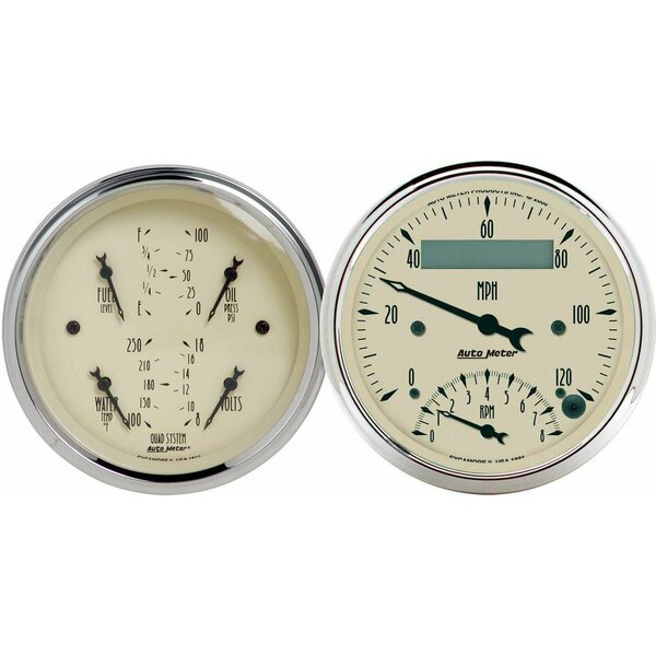 Combination Gauge Kit - Antique Beige - Analog - Fuel Level / Oil Pressure / Speedometer / Tachometer / Voltmeter / Water Temperature - Beige Face - Kit