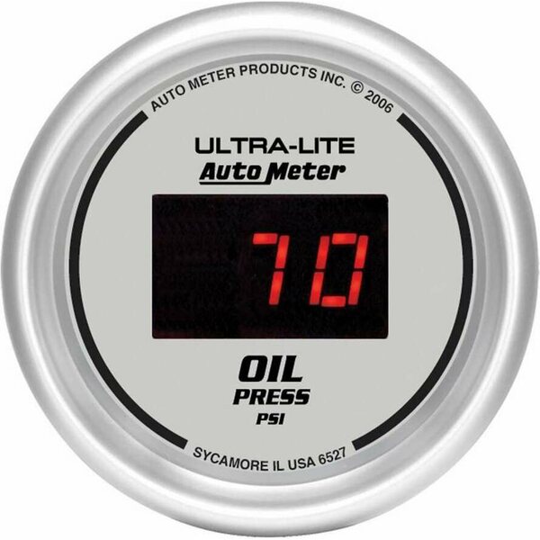 Oil Pressure Gauge - Ultra-Lite - 0-100 psi - Electric - Digital - 2-1/16 in Diameter - Silver Face - Each