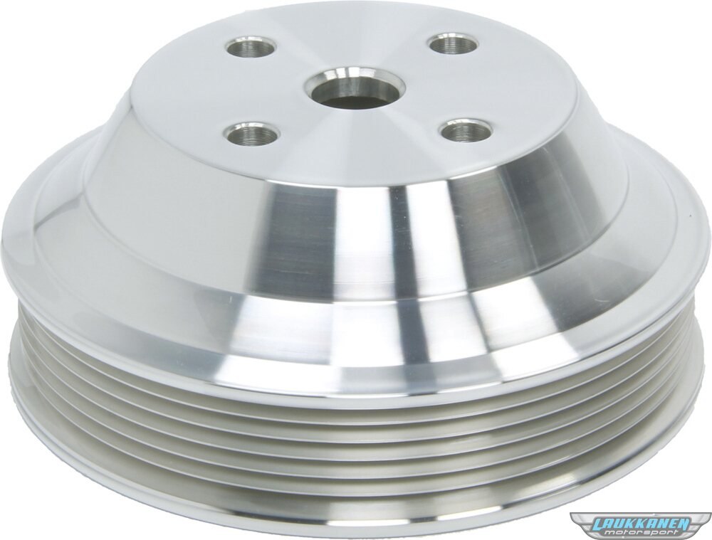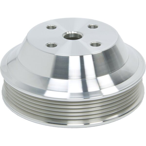 Water Pump Pulley - Serpentine - 6-Rib - 5.250 in Diameter - Aluminum - Clear Powder Coat - Chevy V8 - Kit