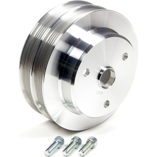 Crankshaft Pulley - Serpentine - 6/6-Rib - 7.000 in Diameter - Aluminum - Clear Powder Coat - Long Water Pump - Small Block Chevy - Each