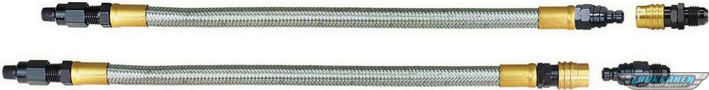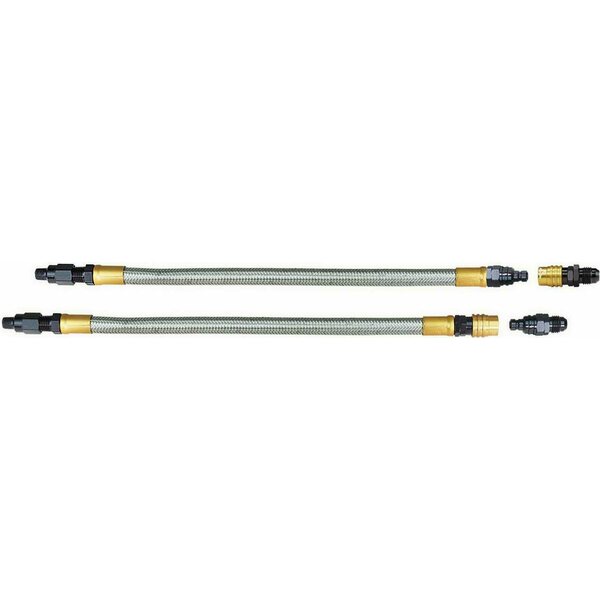 Transmission Line - Quick Release - 12 in Long - 6 AN Steel Braided Rubber Hose - Valved - 6 AN Socket / Plug-Included - Black / Gold - Kit