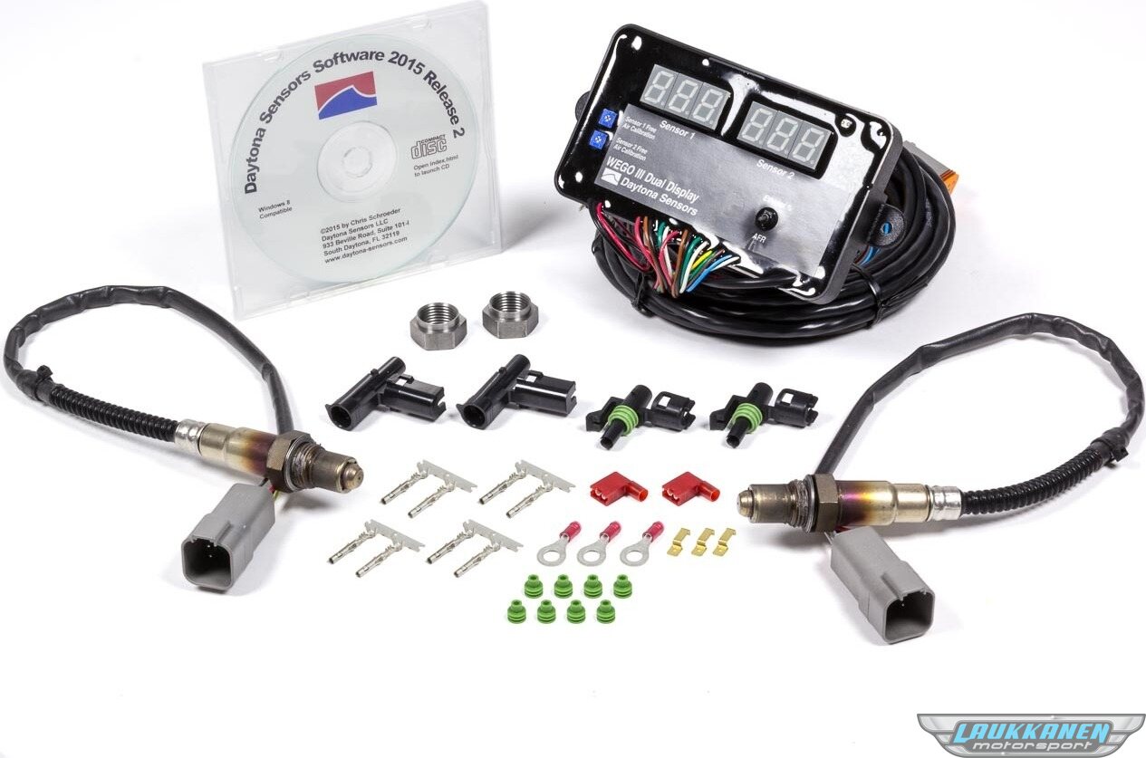 Additional information Complete air/fuel ratio display system with built-in data logging. Includes WEGO 3 unit, TWO Bosch LSU4.2 5-wire wide-band oxygen sensors, sensor wire harness, 18x1.5mm weld nut(s) for mounting sensor on exhaust pipe, and software on CDROM. daytona-sensors.com