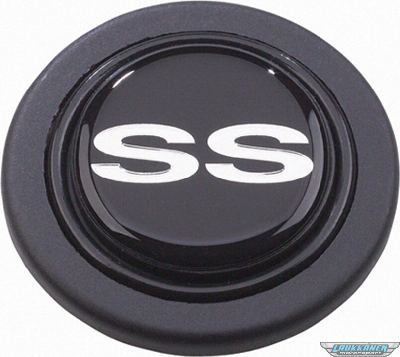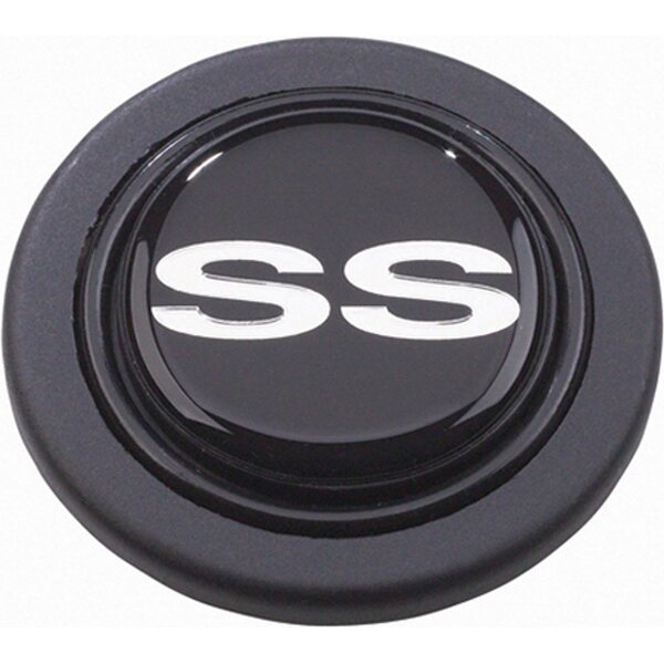 Horn Button - Black / Silver Chevrolet SS Super Sport Logo - Plastic - Black - Grant Signature Series Wheels - Each