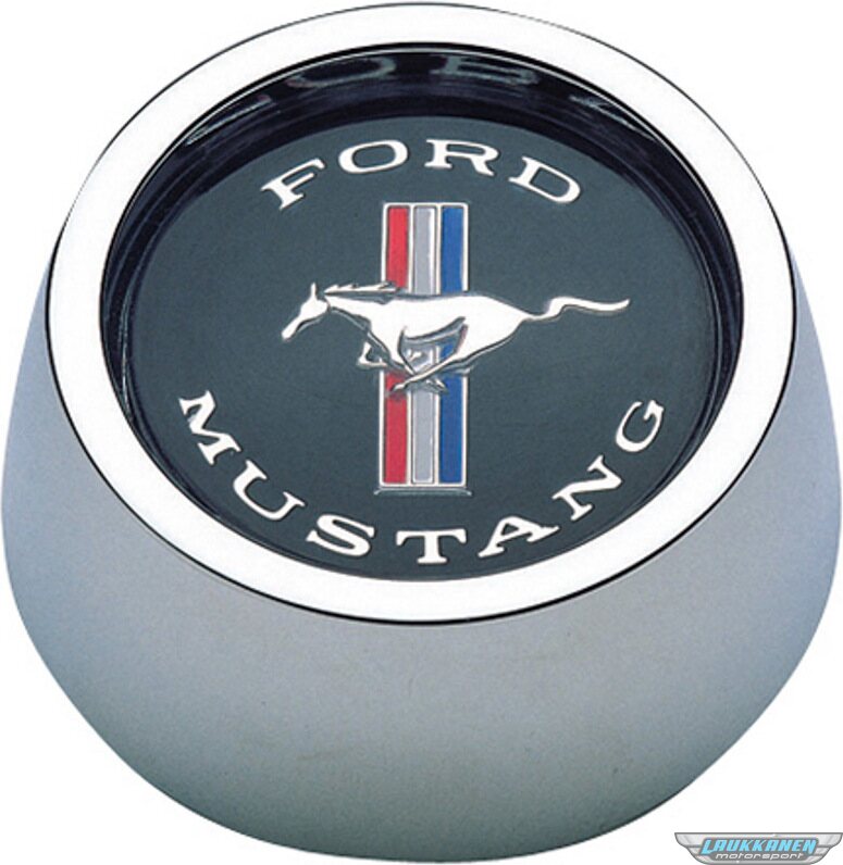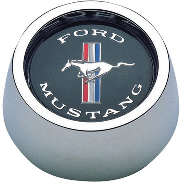 Horn Button - Black / Blue / Red / White / Silver Mustang Logo - Aluminum - Chrome - Grant Classic / Challenger Series Wheels - Each