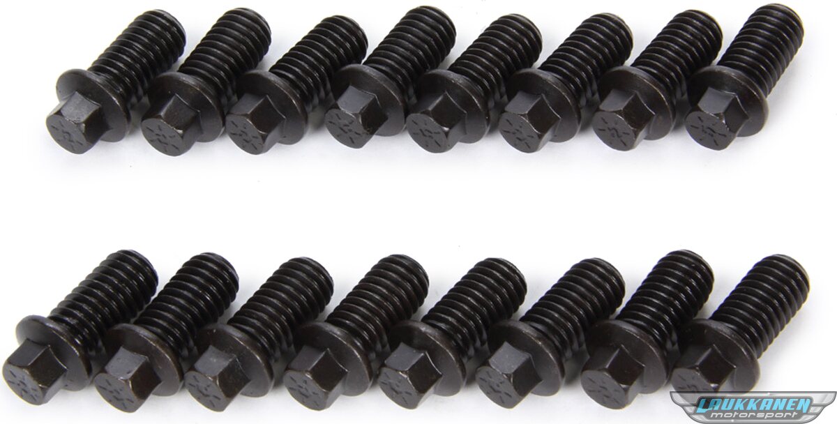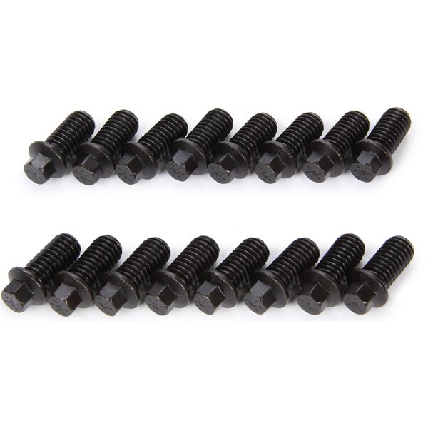 Header Bolt - 3/8-16 in Thread - 1.000 in Long - Hex Head - Chromoly - Black Oxide - Set of 16