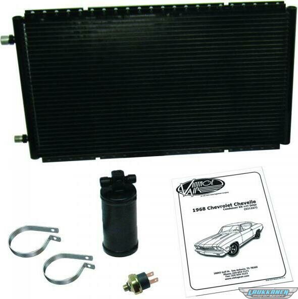 Air Conditioning Condenser and Drier - Gen IV SureFit - Horizontal - 24 x 14 x 13/16 in - 6 AN / 8 AN Male O-Ring Fittings - Aluminum - Black Paint - GM A-Body 1968 - Kit