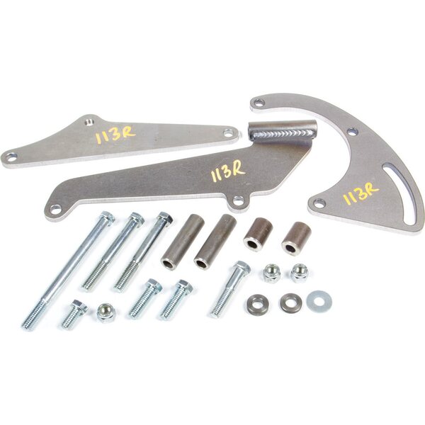 Air Conditioning Bracket - Low Profile - Passenger Side Mount - Steel - Natural - Sanden 508 Compressor - Short Water Pump - Small Block Chevy - Kit