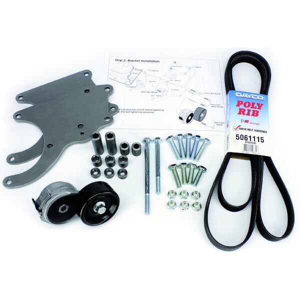 Air Conditioning Bracket - Low Profile - Passenger Side Mount - Steel - Natural - Sanden 508 Compressor - GM LS-Series - Kit