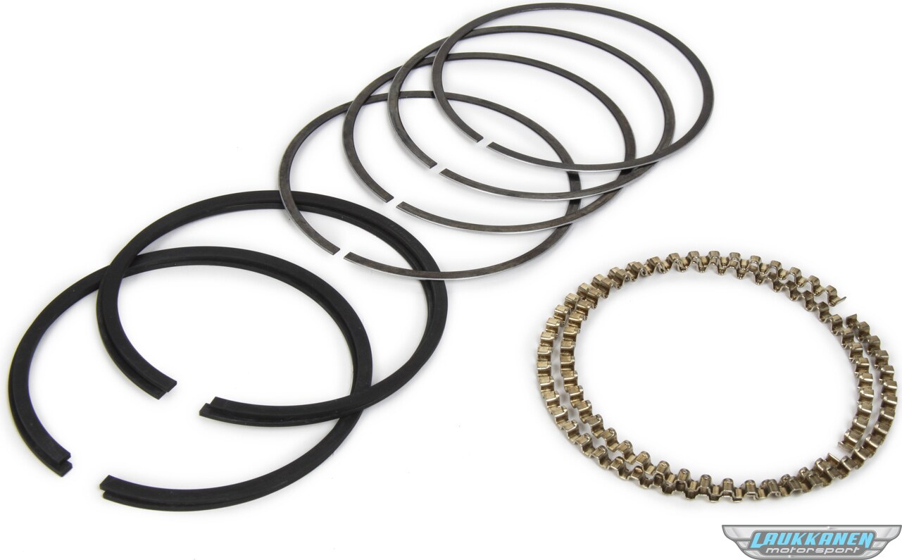 Tuotteen kuvausPiston Rings - 3.498 in Bore - Drop In - 1/16 x 1/16 x 5/32 in Thick - Standard Tension - Iron - Phosphate - 2-Cylinder - Kit