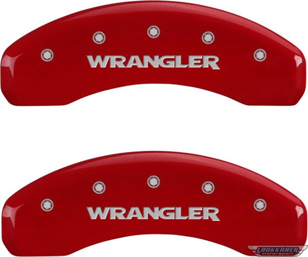 Brake Caliper Cover - Wrangler Script Logo - Aluminum - Red Powder Coat - Jeep Wrangler JK 2007-16 - Set of 4