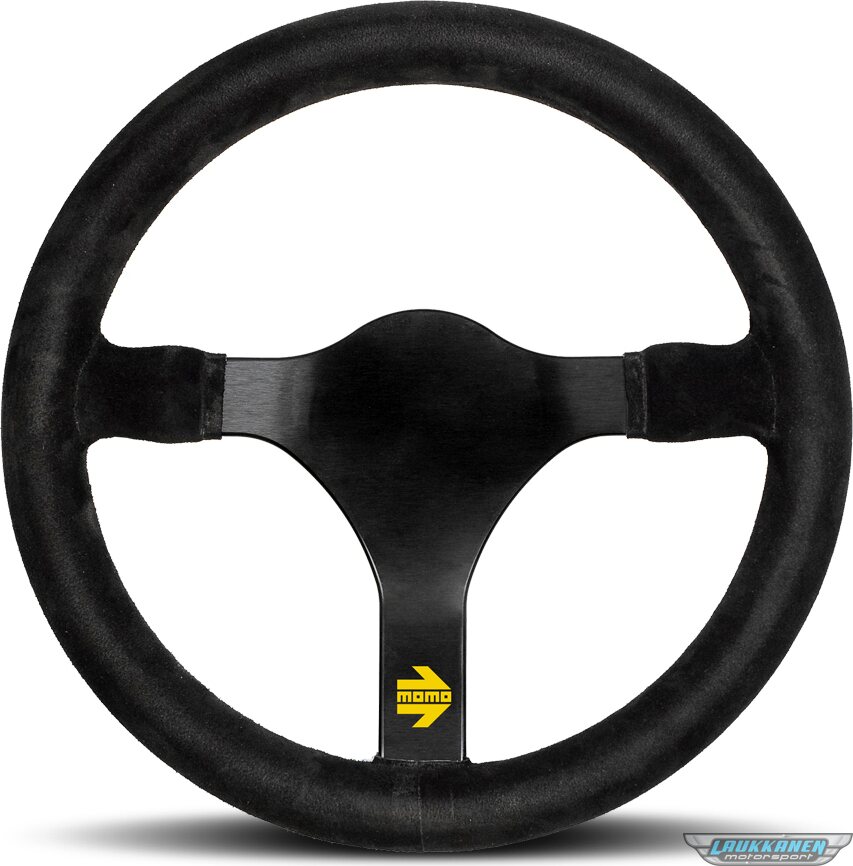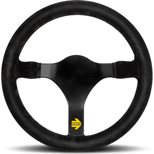 Tuotteen kuvausSteering Wheel - MOD 31 - 320 mm Diameter - 3 Spoke - Flat - Black Suede Grip - Aluminum - Black Anodized - Each