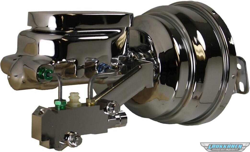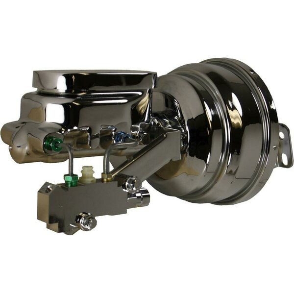 Master Cylinder and Booster - 1-1/8 in Bore - Dual Integral Reservoir - 8 in OD - Dual Diaphragm - Steel - Chrome - GM A-Body 1964-72 / F-Body 1967-69 / X-body 1968-74 - Each
