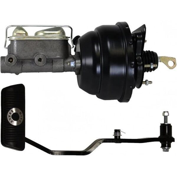 Master Cylinder and Booster - 1 in Bore - Dual Integral Reservoir - 8 in OD - Dual Diaphragm - Steel - Black - Ford Cougar / Mustang 1967-70 - Kit