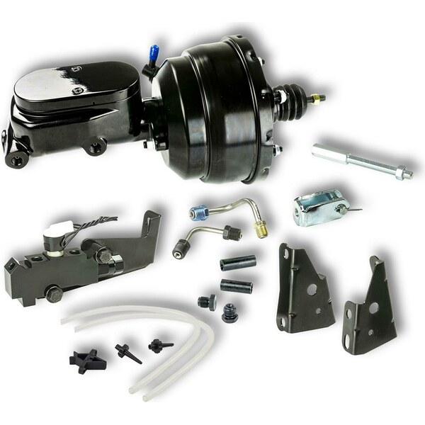 Master Cylinder and Booster - 1 in Bore - Dual Integral Reservoir - 8 in OD - Dual Diaphragm - Aluminum - Black Paint - GM A-Body / F-Body / X-Body 1964-74 - Kit