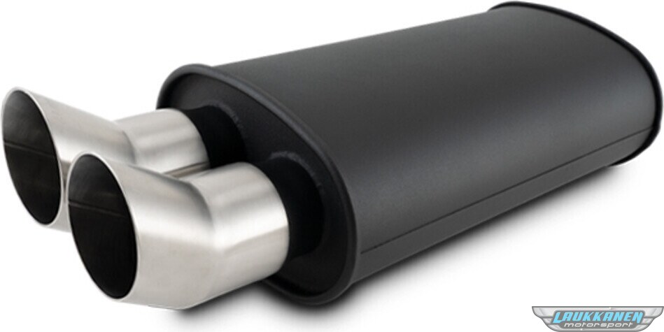 Muffler - Streetpower - 3 in Center Inlet - Dual 3 in Outlets - Stainless Brushed Tips - 15 x 9 x 5 in Oval Body - 22-1/2 in Long - Stainless - Black Powder Coat - Universal - Each
