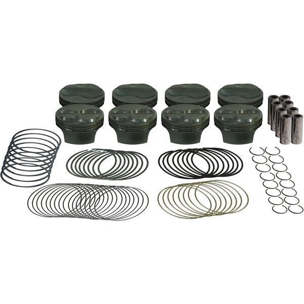 Piston and Ring - PowerPak - Flat Top - 4.125 in Bore - 1.0 x 1.0 x 2.0 mm Ring Groove - Minus 4.00 cc - Oil Support Rails Included - Small Block Chevy - Kit