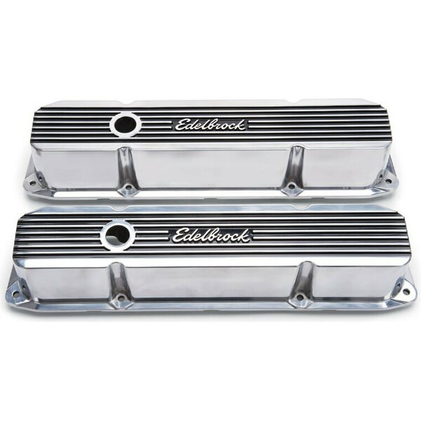 Valve Cover - Elite II - Tall - Baffled - Breather Hole - Edelbrock Logo - Aluminum - Polished - Mopar B / RB-Series - Pair