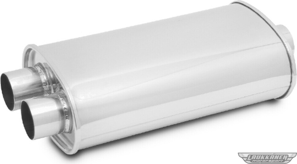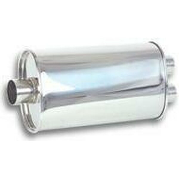 Muffler - Streetpower - 2-1/2 in Center Inlet - Dual 2-1/4 in Outlets - 5 x 9 in Oval Body - 20 in Long - Stainless - Polished - Universal - Each