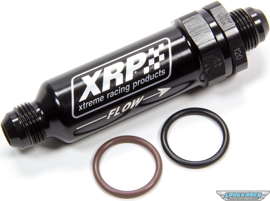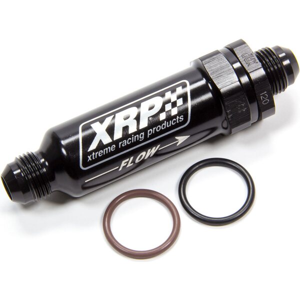 Tuotteen kuvausFuel Filter - In-Line - 120 Micron - Stainless Element - 8 AN Male Inlet - 8 AN Male Outlet - Aluminum - Black Anodized - Each