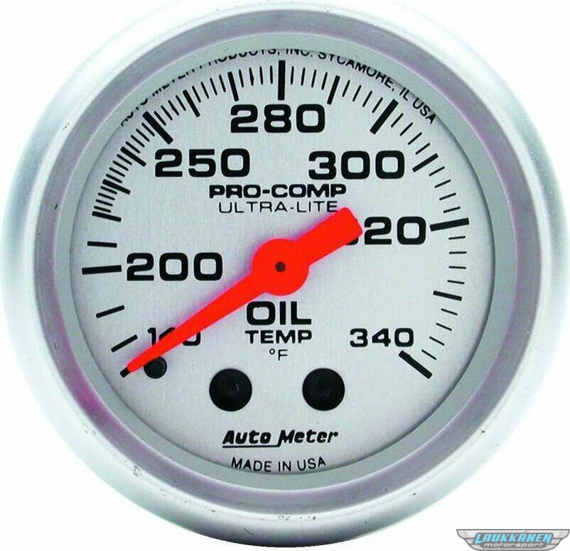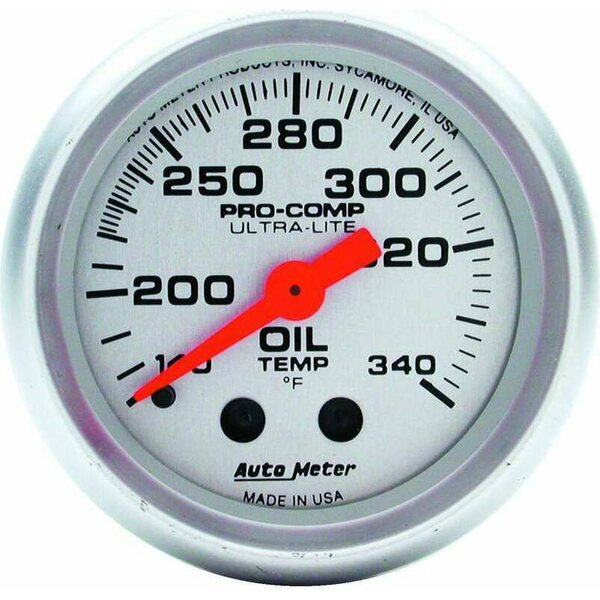 Oil Temperature Gauge - Ultra-Lite - 100-340 Degree F - Mechanical - Analog - 2-1/16 in Diameter - Silver Face - Each