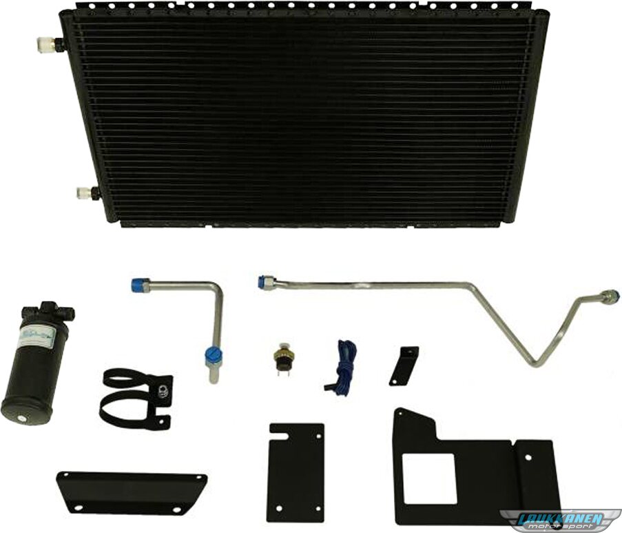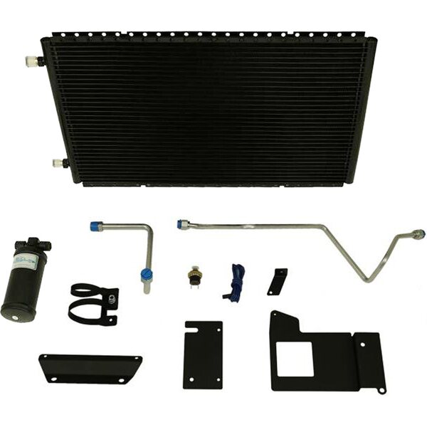 Air Conditioning Condenser and Drier - SureFit - Horizontal - 24 x 14 in - 6 AN / 8 AN Male O-Ring Fittings - Aluminum - Black Paint - GM F-Body 1969-72 - Kit