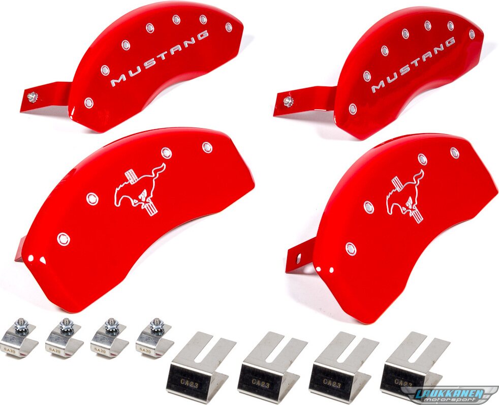 Brake Caliper Cover - Mustang Pony Logo - Aluminum - Red Powder Coat - Ford Mustang 2015-17 - Set of 4