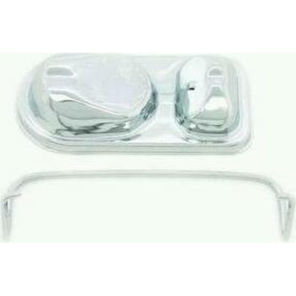 Master Cylinder Cap - Single Bail - 2-3/4 x 5-3/4 in - Steel - Chrome - Ford Master Cylinders 1973-83 - Each